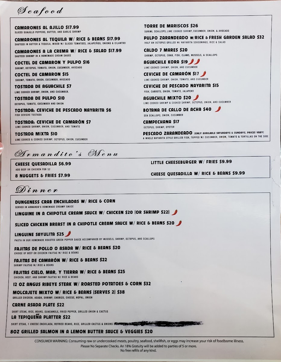 Armando's Restaurant Bar Menu